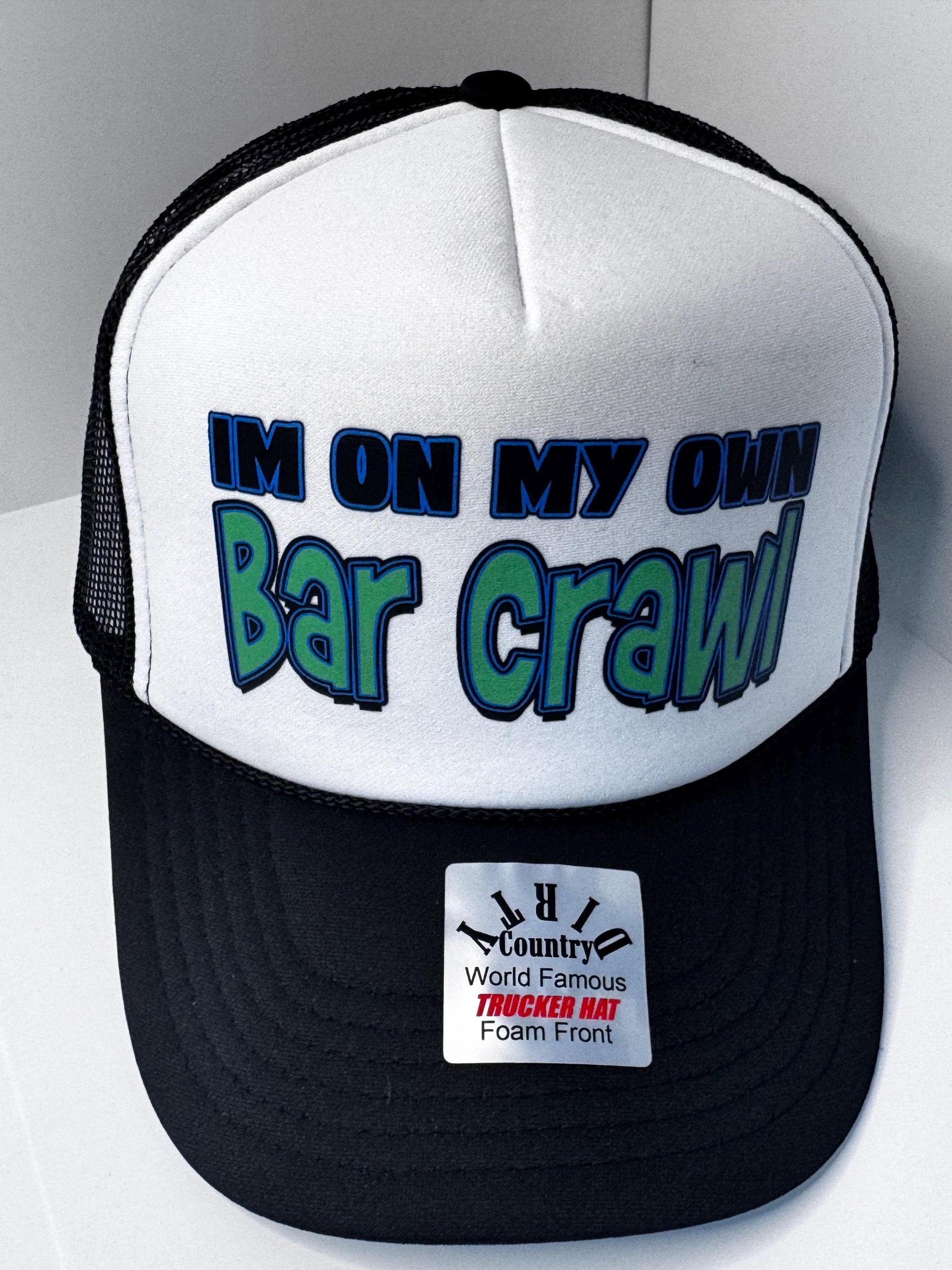 I’m on my own bar crawl Custom Trucker Hat with parody design, Adjustable Snapback Closure, and Ideal for Any Occasion